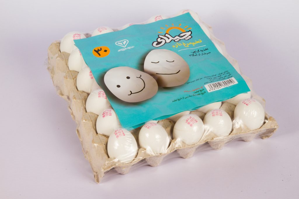 تخم مرغ ۳۰ عددی چیلای به صورت شیرینگ پک در شانه های ۳۰ عددی مقوایی همراه با درب شانه و وکیوم سلفنی با رعایت کامل اصول بهداشتی و به صورت مکانیزه با کیفیت بسیارمطلوب در بازار مصرفی عرضه میگردد.این محصول نیز بعد از نظارت و کنترل کیفی زیرنظر متخصصین این صنعت به منظور افزایش سطح سلامت و پاکیزگی محصول بدون هرگونه شکستگی و تغییررنگ همراه با چاپ تاریخ و قیمت روی تخم مرغ و لیبل روی درب شانه در وزن های ۵۵تا۶۰گرمی بسته بندی میشود.